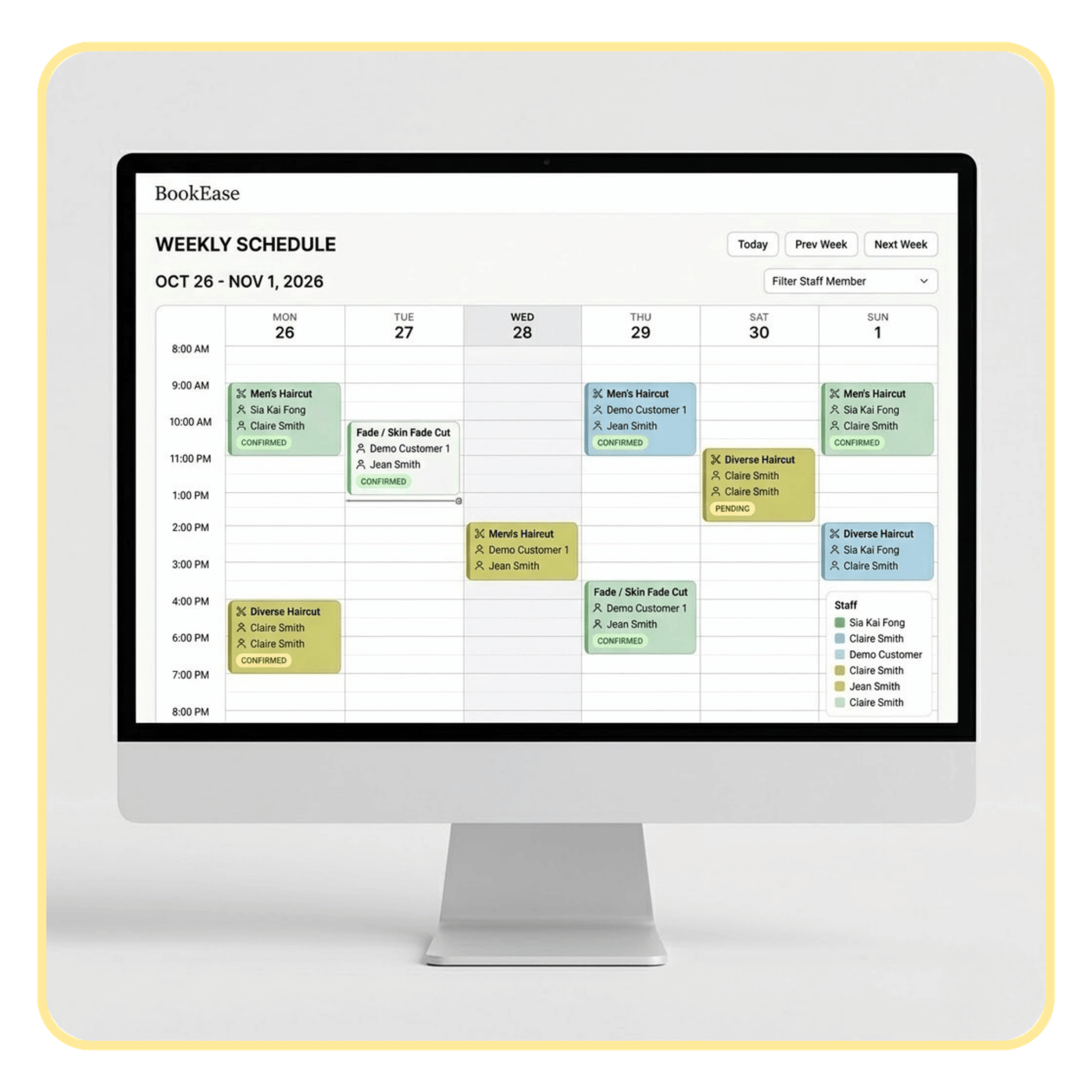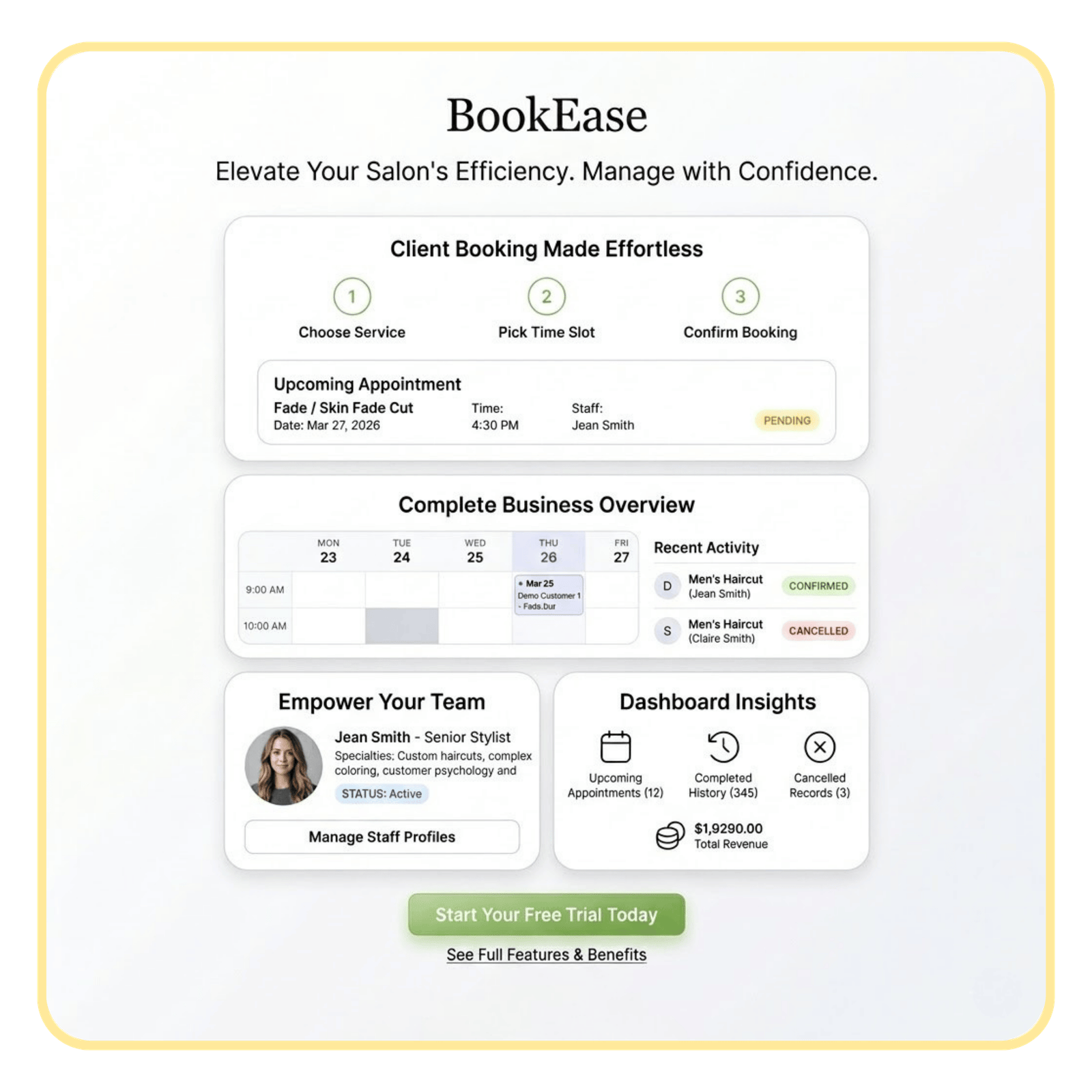 • Online Booking + Staff + Calendar Management